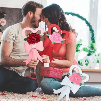 6PCS Mixed Color Single Flower Boxes Heart Bow Decoration Rose Holder Function Flower Sleeves Single Flower Design