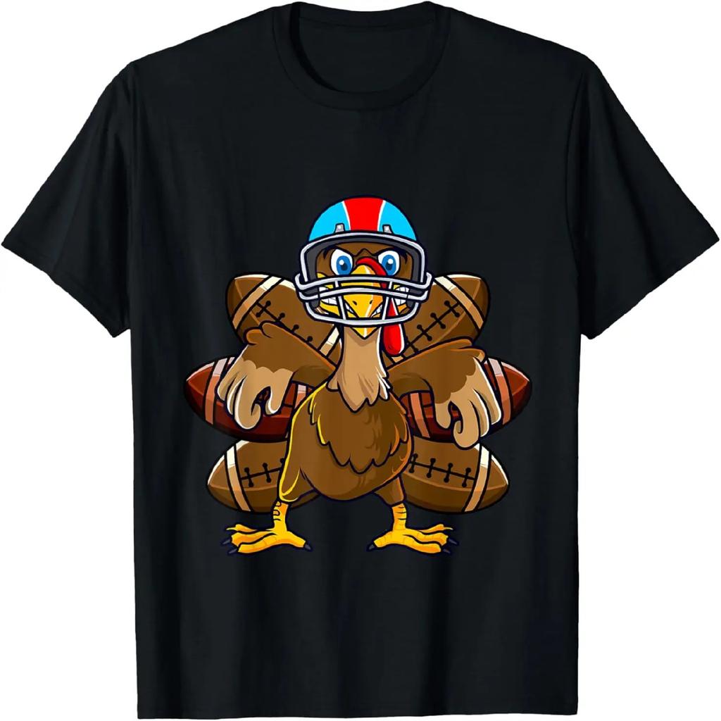Thanksgiving Turkey Football Player Funny Boys Girls Kids T-Shirt