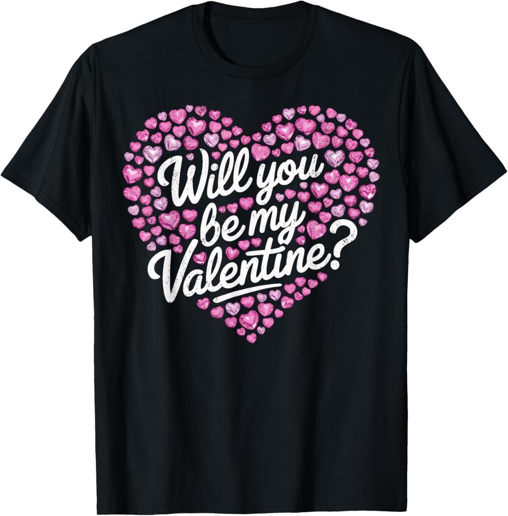 Will You Be My Valentine Heart Graphic Casual Men's Cotton Short Sleeve T-Shirt Daily Tee