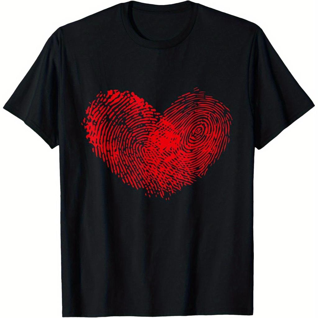 Fingerprint Heart Graphic Tee Men Women Casual Cotton Crew Neck Short Sleeve T-Shirt Daily Gift