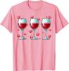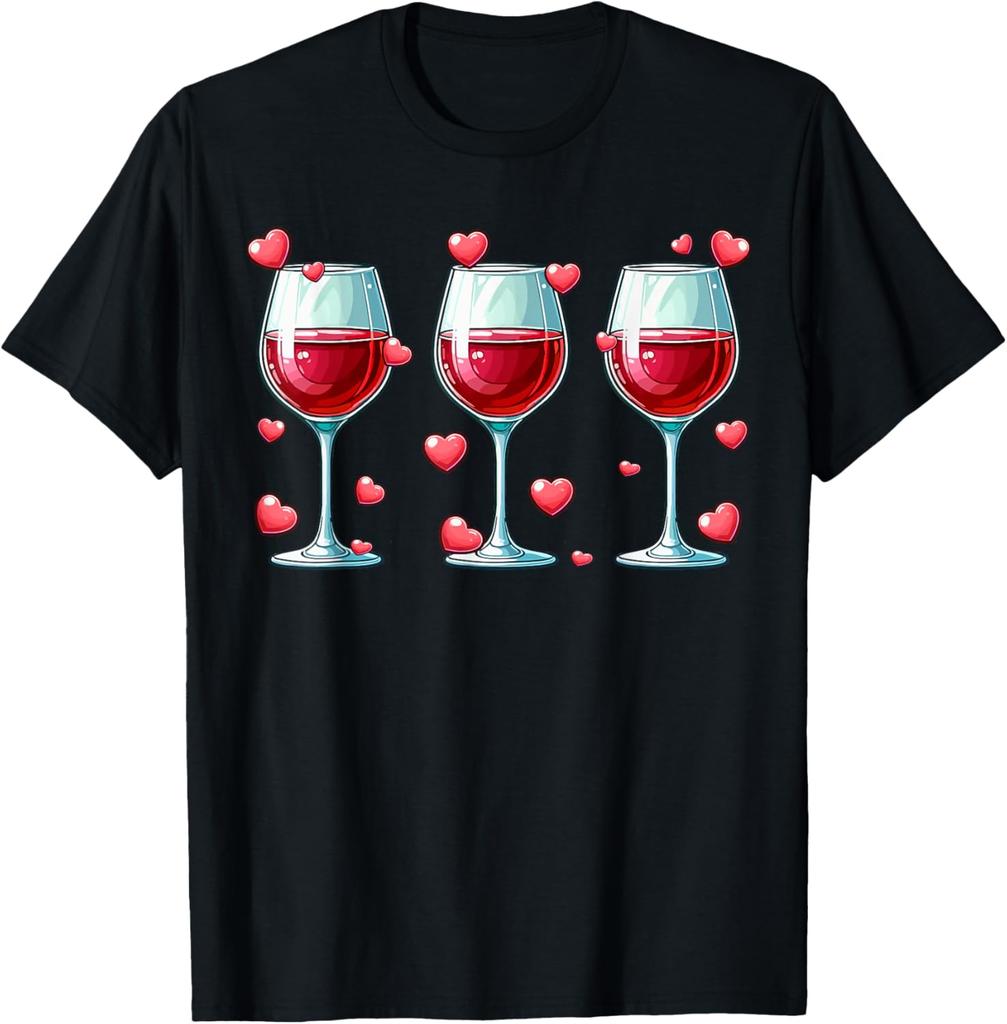 Red Wine Glasses Hearts Valentine Drinker Couple Lovers Graphic Tee Casual T-Shirt