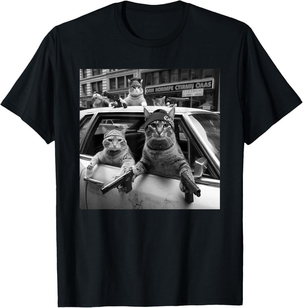 Print Gangster Cats Graphic Tee Men's Funny Street Style Oversized T-Shirt Casual Daily Print Round Neck