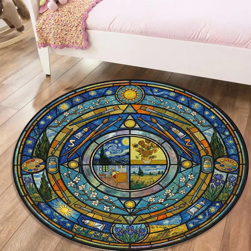 Mandala Famous Painting Round Area Rug,Carpet Rug for Living Room Bedroom Sofa Playroom Decor,Non-slip Floor Mat Q0024