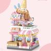 Mini City Cafe Building Block Toys, Ice Cream Shop, Flower Shop, Street Scene Cartoon Cute Food House, Festival Gifts