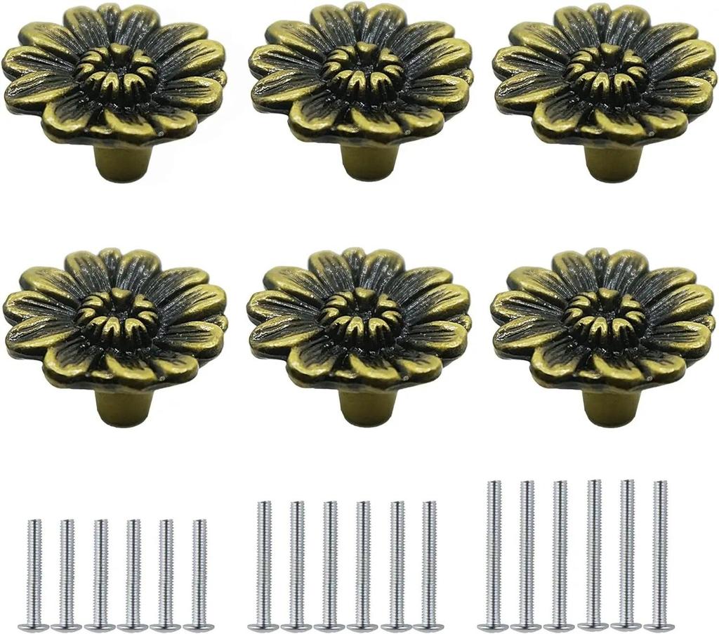 Bronzed Cabinet Knobs Vintage Dresser Drawer Knobs Daisy Floral Drawer Pulls for Furniture Decor Antique Closet Handle Pull