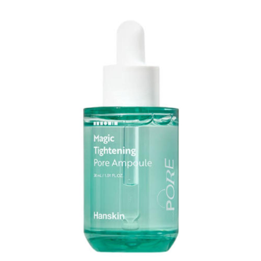 Hanskin Magic Tightening Pore Ampoule, Korean pore minimizer, pore tightening serum, K-beauty sebum control, Hanskin pore care, facial ampoule for large pores, skin refining treatment, South Korea beauty, oil control serum.