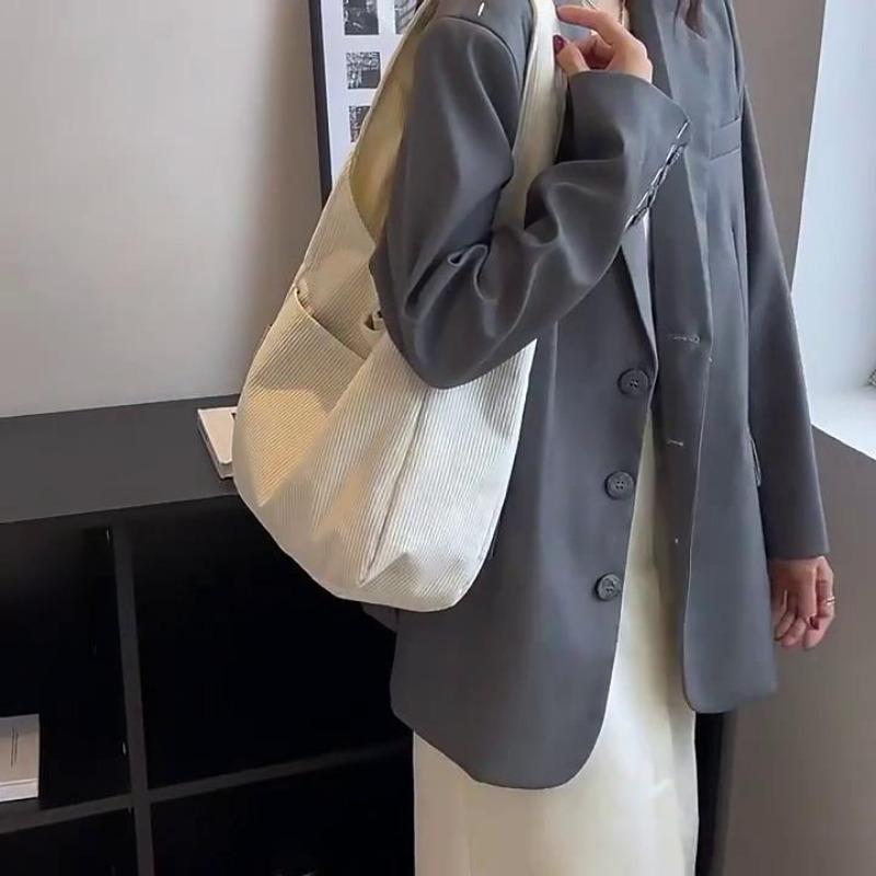 Casual Corduroy Shoulder Bag for Women Large Capacity Shopping Tote Autumn Winter Top-handle Bag Student Big Handbags