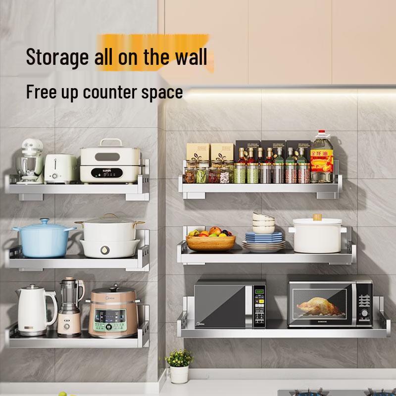 Punch-Free 304 Stainless Steel Wall Kitchen Shelf