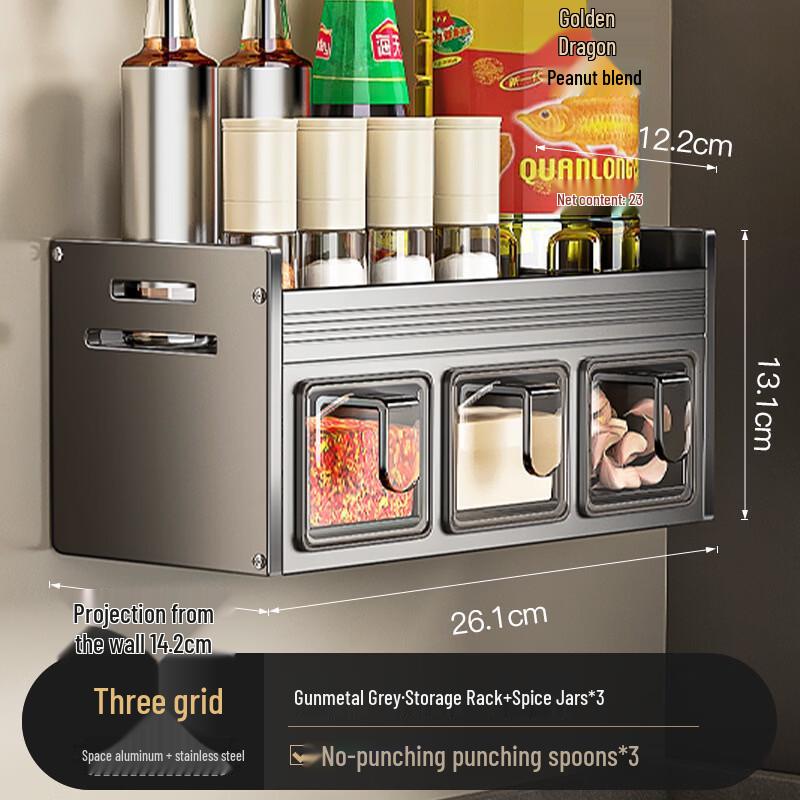 Kitchen Wall-Mounted 3-Compartment Spice Organizer