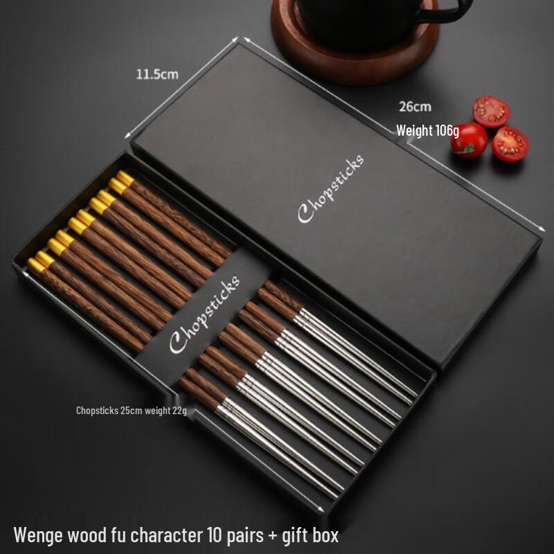Minai 304 Stainless Steel Non-slip Chinese Style Solid Wood Chopsticks
