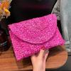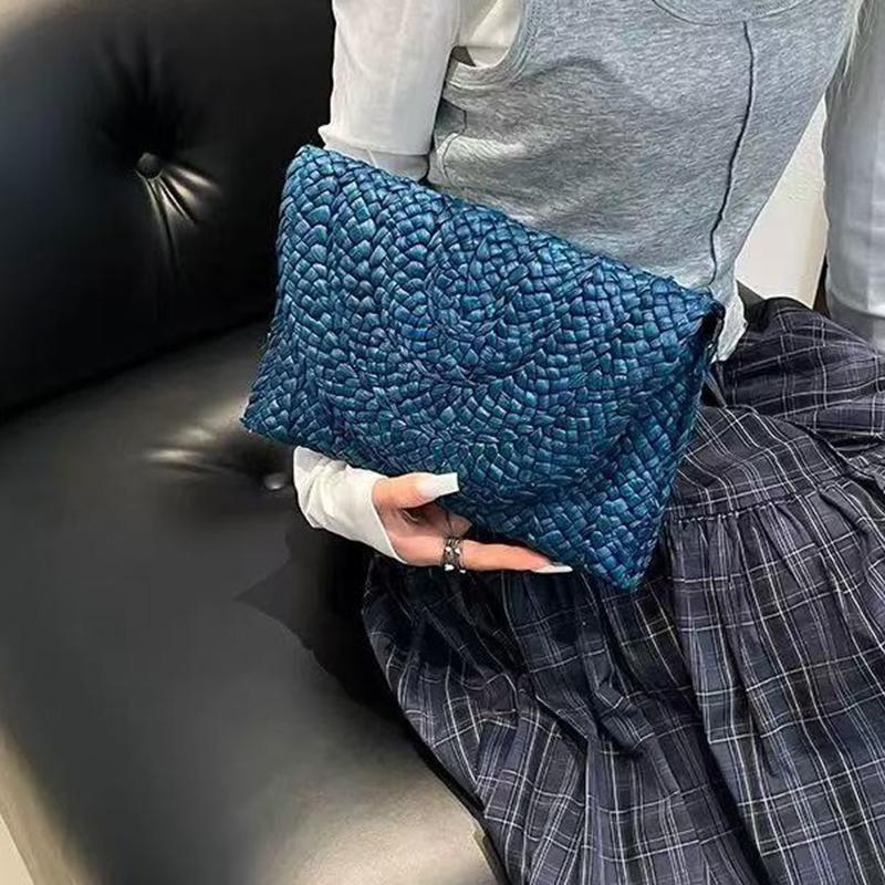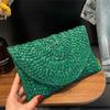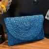 Fashion Beach Purse Women Summer Beach Bag Envelope Woven Clutch Solid Color Large Capacity Storage Bag Corn Husk Straw Hand Bag