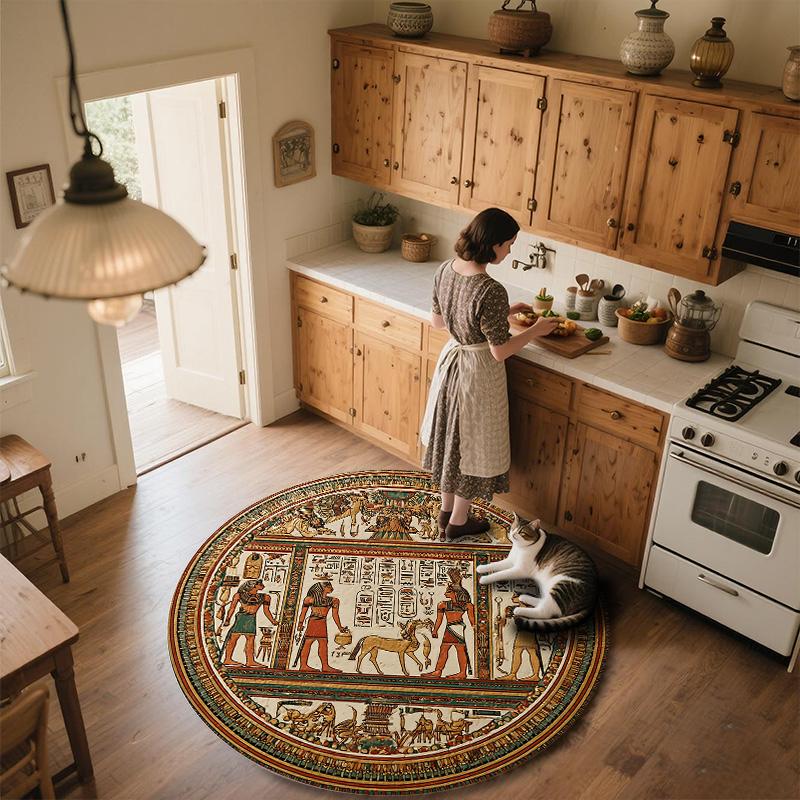 Ancient Egyptian Totem Round Area Rug,Carpet Rug for Living Room Bedroom Sofa Playroom Decor,Non-slip Floor Mat