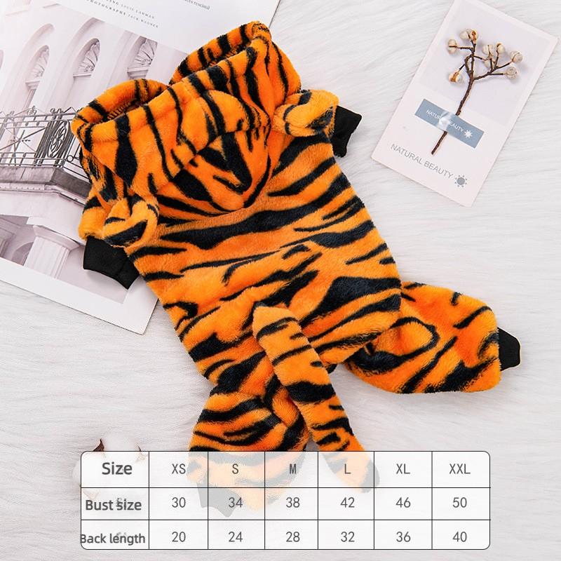 Puppy Tiger Hoodie Warm Fce Lined Dog Clothes Autumn Winter Tiger Transformation Suit for Bichon Pomeranian Four Legged Suit