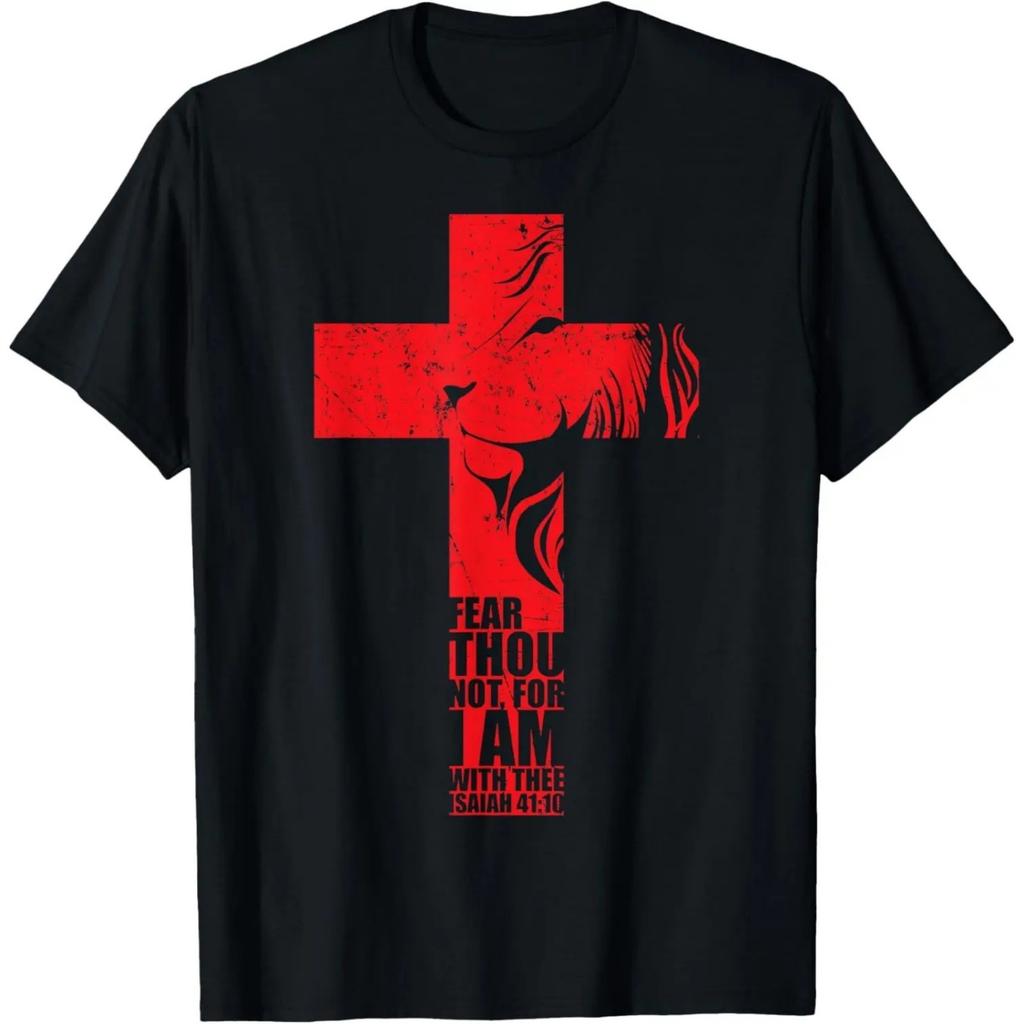 Christian Gifts Men Lion Religious Cross Fear Verse Sayings T-Shirt