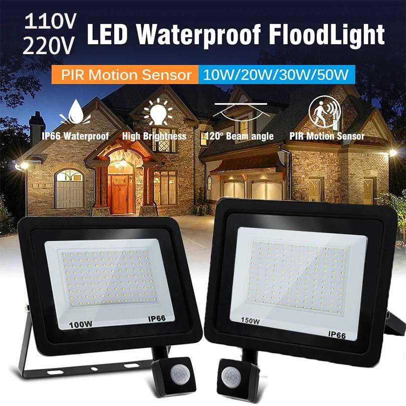 LED Floodlight Motion Sensor AC220V AC110V 10W-300W Waterproof Outdoor Projector Exterior Spotlight Outdoor Lamp Wall Reflector