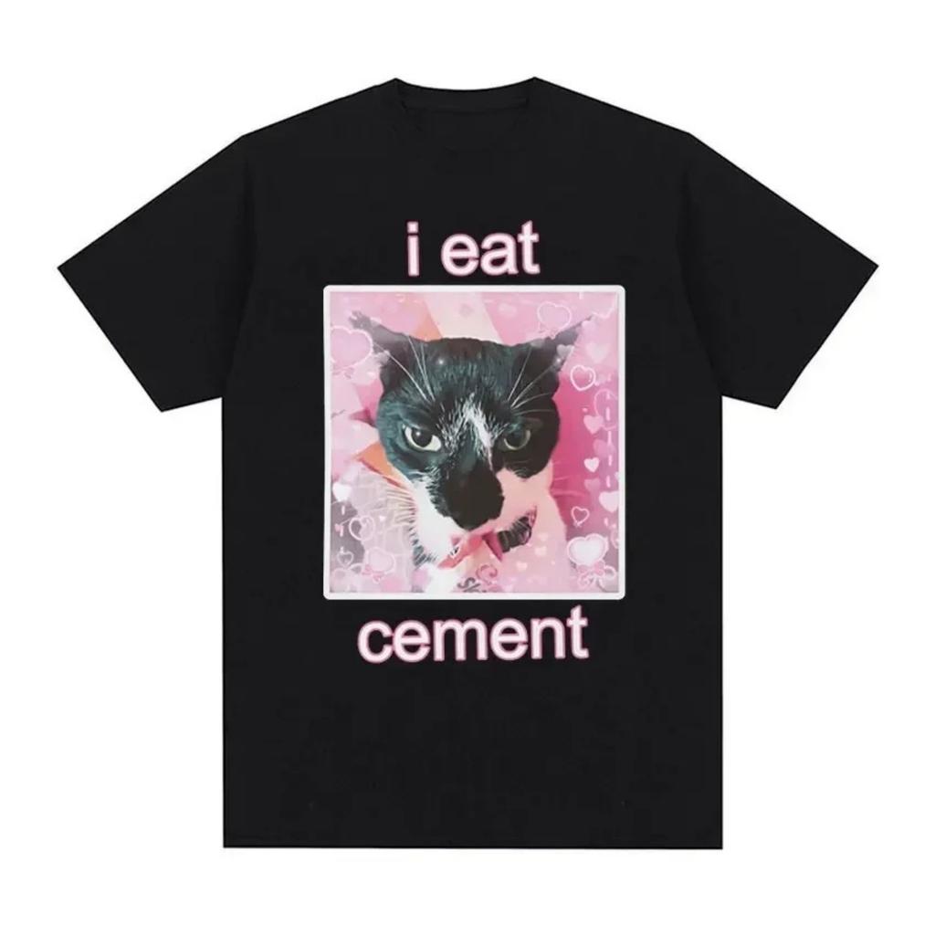Funny I Eat Cement Cat Meme Graphic T-Shirt Men Women Fashion Casual Short Sleeve T-shirts Summer Tops Oversized T Shirt