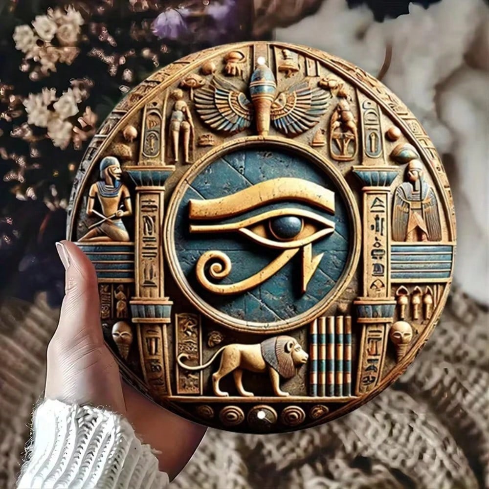 Vintage Horus Eye Metal Wall Art Hand Carved Rustic Home Decor