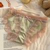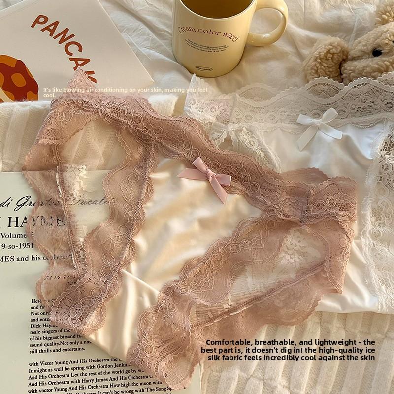 Female Summer Thin Sexy Lace Bow Pure Desire Satin Breathable High Split Low Waist Triangle Briefs