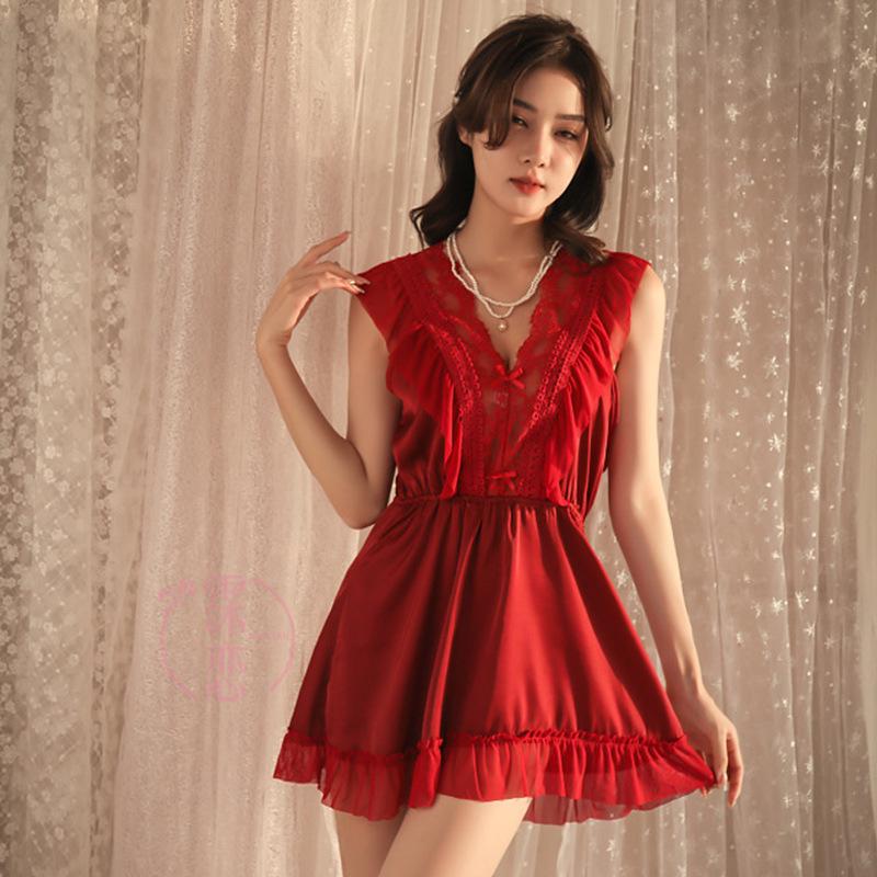 Sex Underwear Women's Pure Desire Deep V Milk Pajamas Lace Pure Cute Nightgown Passion Sex Clothes