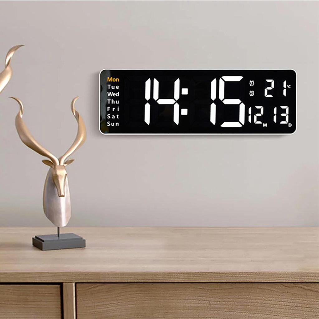 Contemporary Digital Wall Clock with Temperature and Date Display - Adjustable Brightness for Home