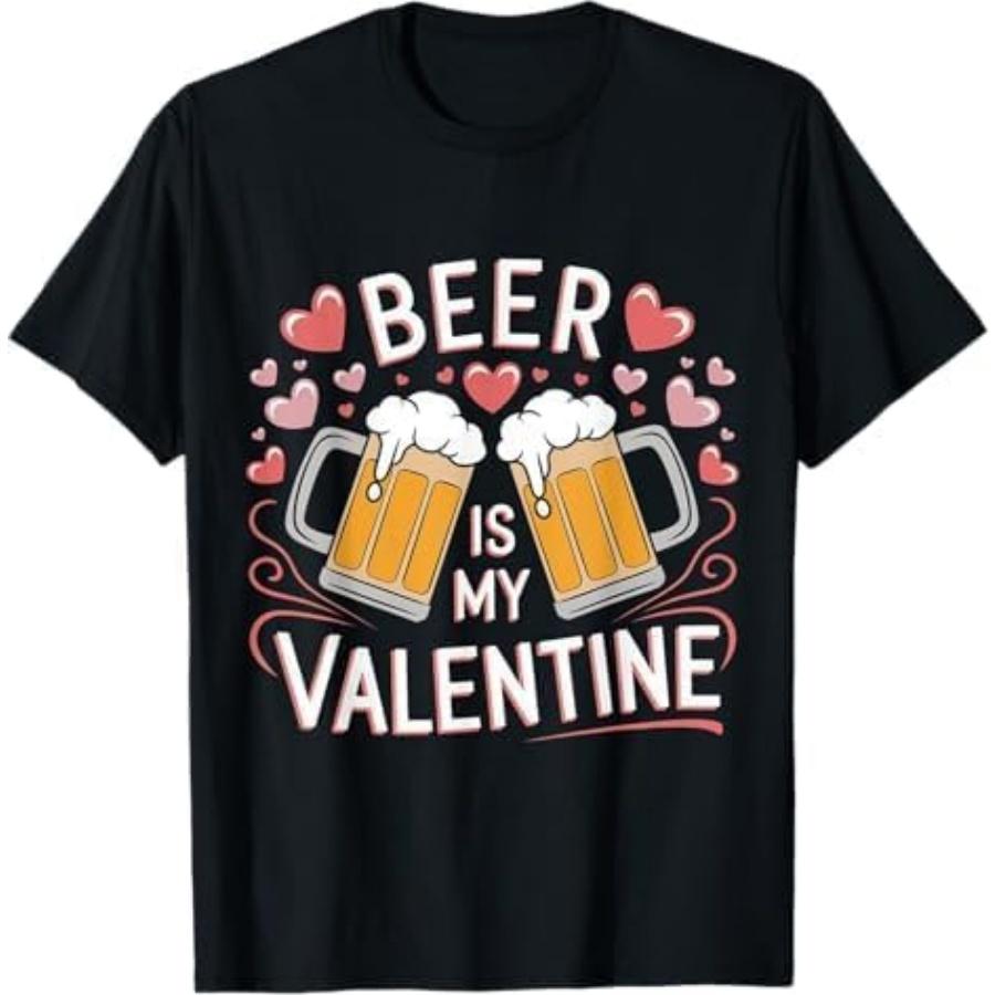 Beer Is My Valentine Day Drunk Cupid Drinking Heart T-Shirt HABI Black