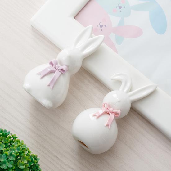 This charming bunny figurine is crafted from high-quality ceramic, featuring a smooth, delicate surface with a soft luster that is durable and easy to clean. Designed to resist fading and aging, it maintains its elegant appearance over time. The two rabbits are adorned with pastel pink and lilac ribbon bows, adding a gentle, warm touch perfect for spring and Easter celebrations.