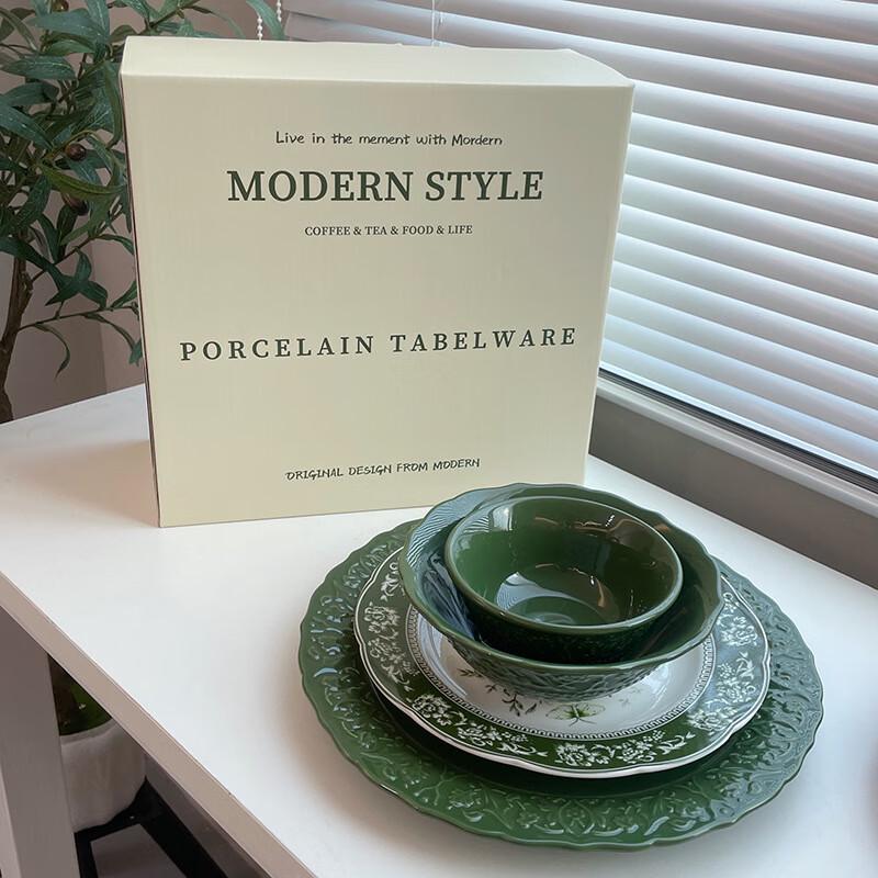 French Retro Marie Dark Green Ceramic Dinnerware Set
