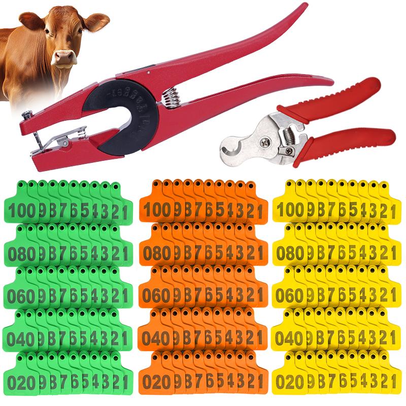 100Pcs Cow Ear Tag/Ear Tag Plier/Unloading Plier Copper Head With Number No.1-100 TPU Ear Tag Label Digital Sign Cow Sheep