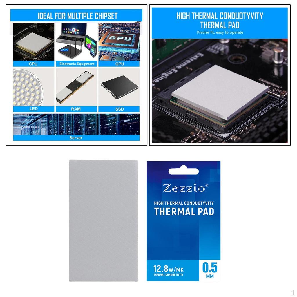 - Made of upgraded silicone material and with 12.8 W/ thermal conductivity, these thermal pads provide great improvement on heat transfer between electronic elements and they can effectively cool the temperature down in seconds.