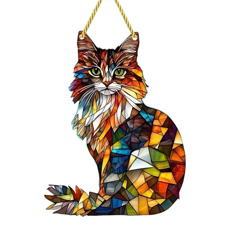 Durable Cat Pattern Pendant Safe Acrylic Window Decoration Colorful Cat Stained Glass Art Decor for Cat Lovers Acrylic Window, Durable Acrylic Sign