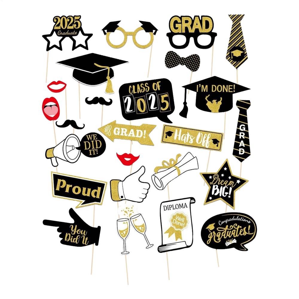 2025 Graduation Photo Booth Props 25 Pieces High School Graduation Decorations Event & Party Supplies For Prom Photobooth