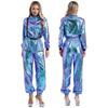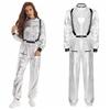 Women's Role Play Astronaut Outfit S-3XL, Shiny Metallic Jumpsuit with Mock Neck Long Sleeves, Zipper Bodysuit Halloween Costume