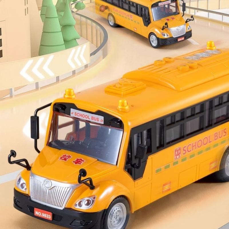1 Set Bus Car Toy 1:30 Inertia Sliding Campus Bus Car Model Simulation Sound And Light Music Educational Toys Children'S Gift