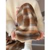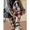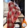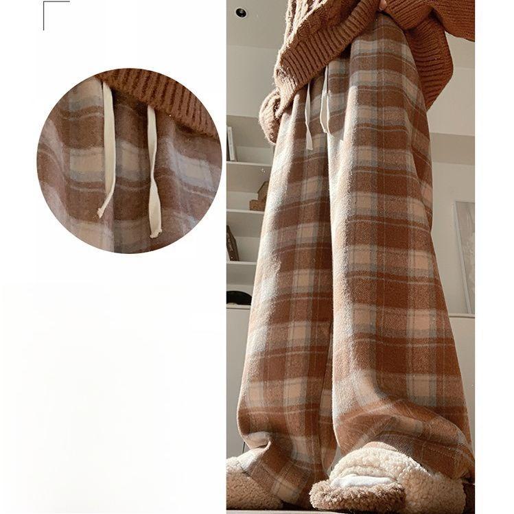 Coffee-colored Retro Checkered Casual Pants for Women In Autumn and Winter, Thickened and Fleece High-waisted Woolen Loose Floor-length Pants