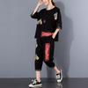 Set of Loose-fitting Large-sized Patched-hole Summer Casual Two-piece Set with Printed Fabric for Women, Fashionable and Stylish.