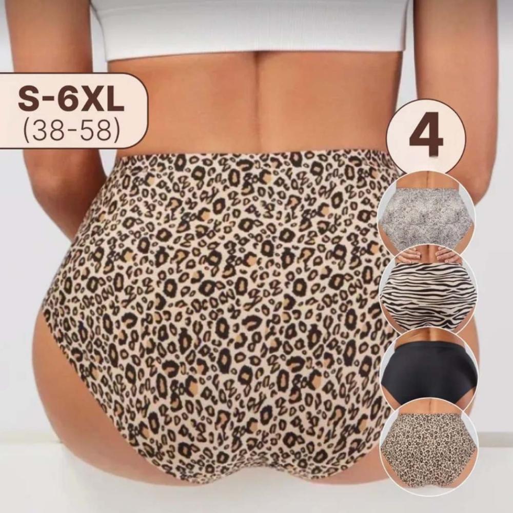 High-waisted Printed Ice Silk Panties Seamless High-elasticity Briefs Plus Size S-XXXXXXL