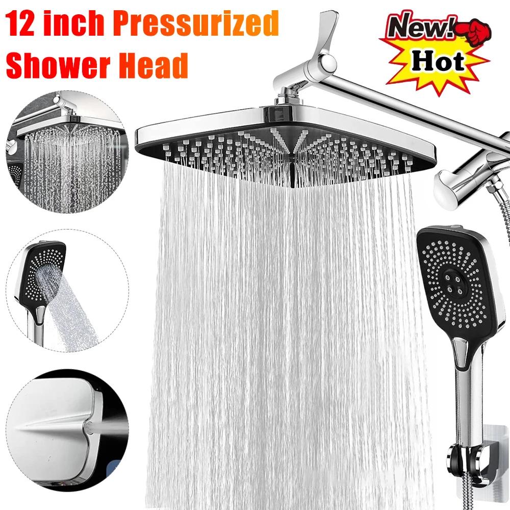 12 Inch Rainfall Fixed Shower Head/Handheld Shower Head Combo 3+1 Settings Top Spray Wall-Mount Shower Set In Wall Shower System