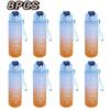 750ml Sports Water Bottle High Temperature Resistant Graduated Straw Cup Rainbow Frosted Progressive Color Water Cup Plastic Cup