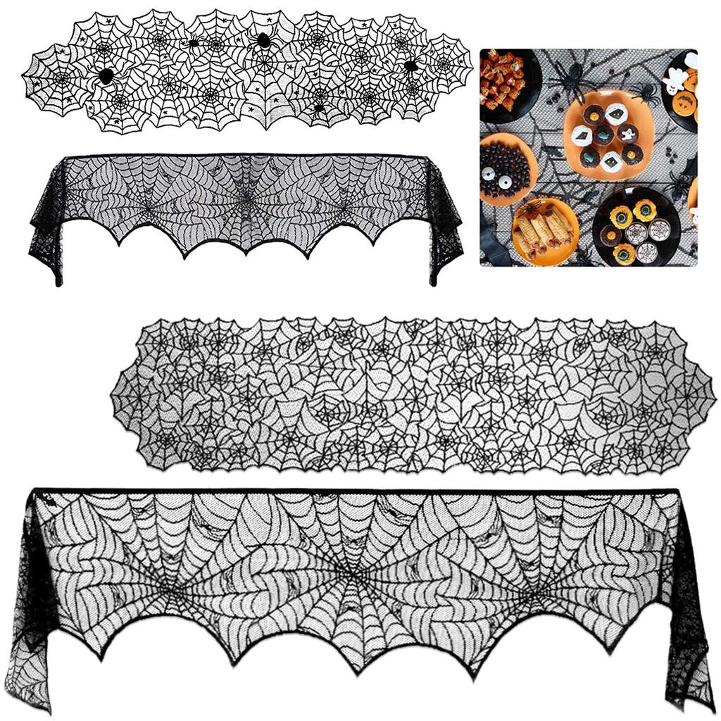 Halloween Black Lace Tablecloth Spider Cobweb Cover LuoluoHouse Elegant Horror Masquerade Party Scary Movie Night Table Decor