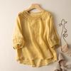 Retro Round Neck Embroidered Cotton and Linen Blouse Women's Fashion Sense Temperament Thin Section Slimming T-shirt