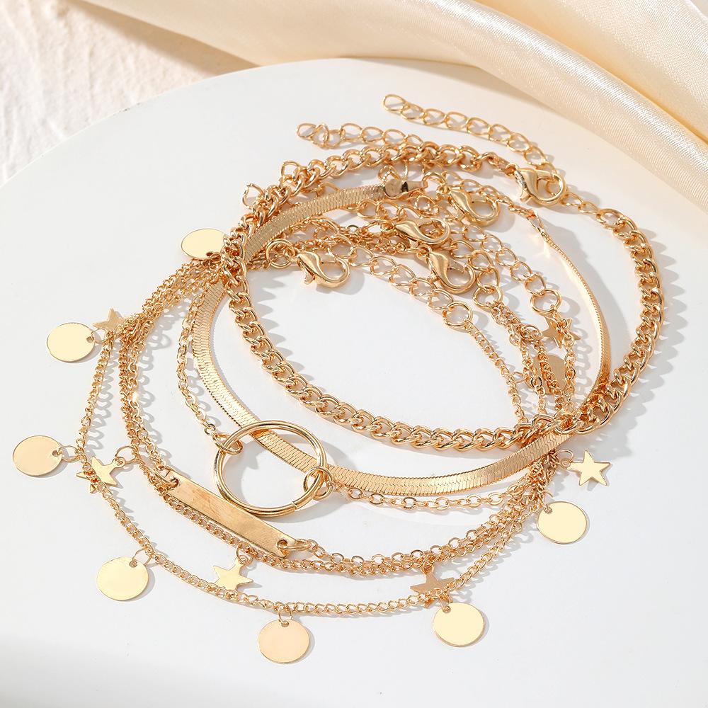 Geometric Daily Wear Stars 5pcs/set Beach Vacation Accessory Gift for Women Anklet Tassel Snake Chain Ankle High Quality