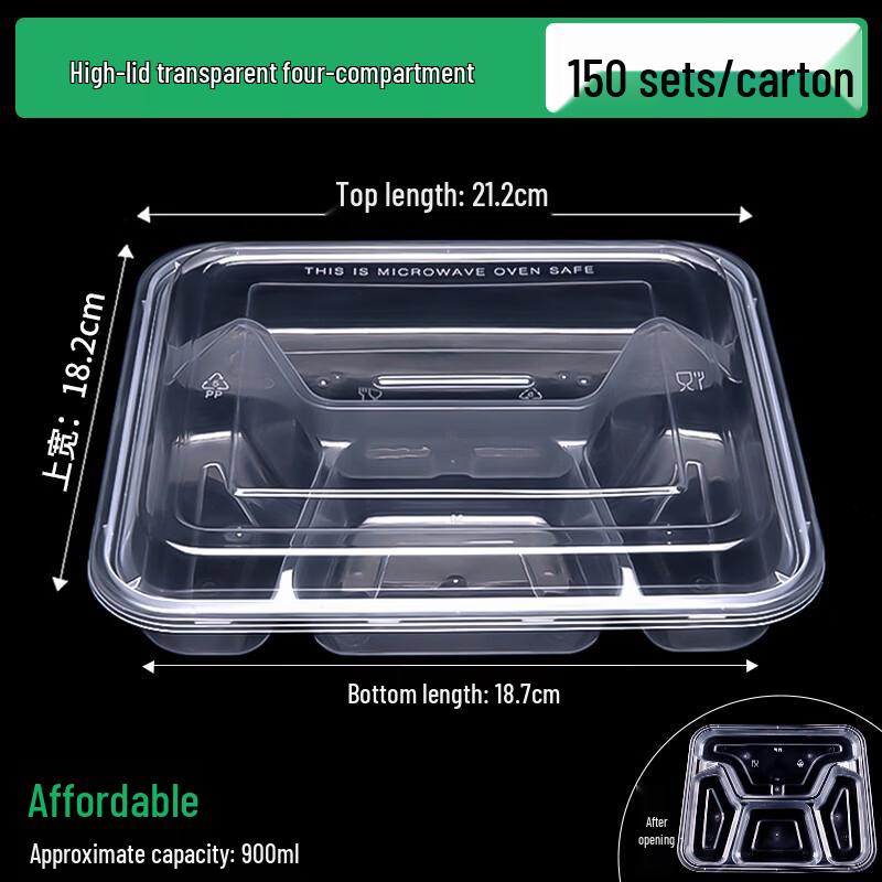 Disposable 4-Compartment Transparent Meal Prep Containers, 150 Sets