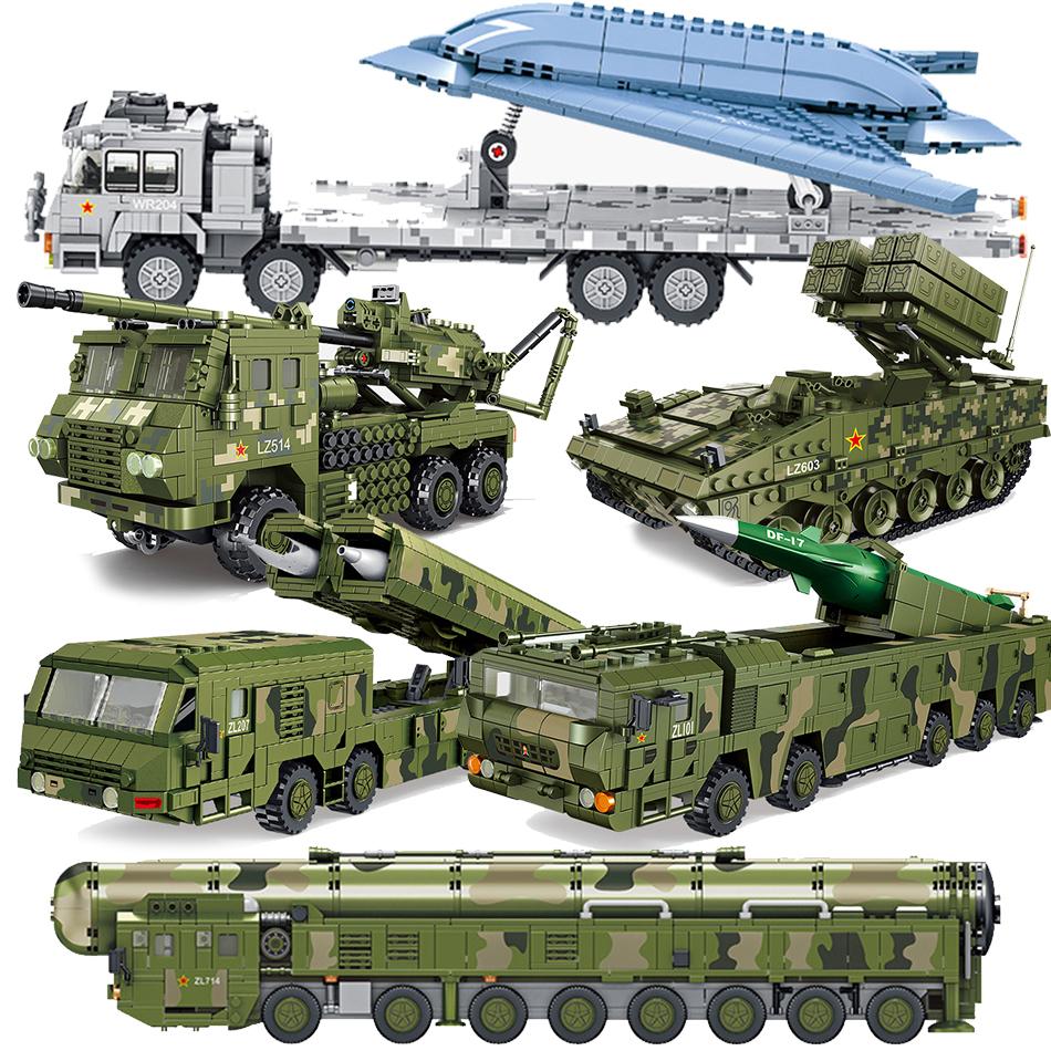 China Modern Army Military Vehicle Trucks SCUD Launcher Sets Building Blocks Bricks Toys Tanks Antitank Missile Car DF-17 DF-41