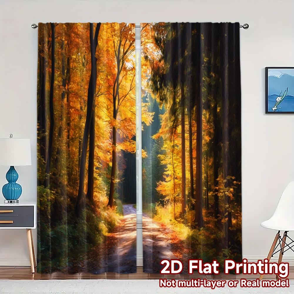 2pcs 2D FLAT PRINTING Curtains (Without Rod) Autumn Trail Modern Curtain Fabric Durable 100% Polyester Fabric Curtains Gifts