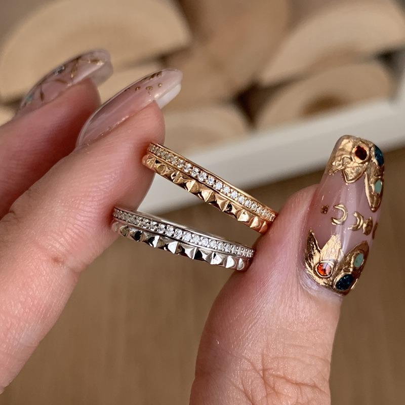 Fashion Light Luxury Ring for Women Silver Diamond Inlaid Trendy Rhombus Glossy Ring Stacked Style Party Gifts