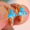 Trendy Crystal Water Blue Zircon Flower Stone Hoop Earrings For Women Vintage Gold Color Wedding