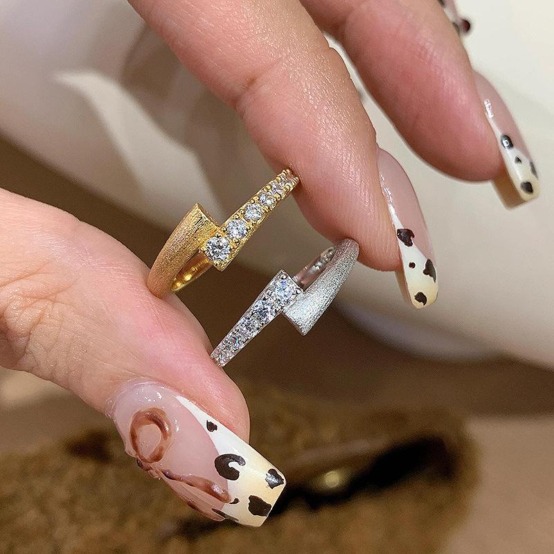 Vintage Simple Style Wire Drawing Rings for Women Light Luxury Fashion Inlay Diamonds Ring Party Wedding Fine