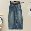 Elegant Woman Split Female Pear-shaped Design Pockets High Waist Thin Mid-length Package Hip Retro Versatile Comfortable Fashion Denim Bustier Skirt