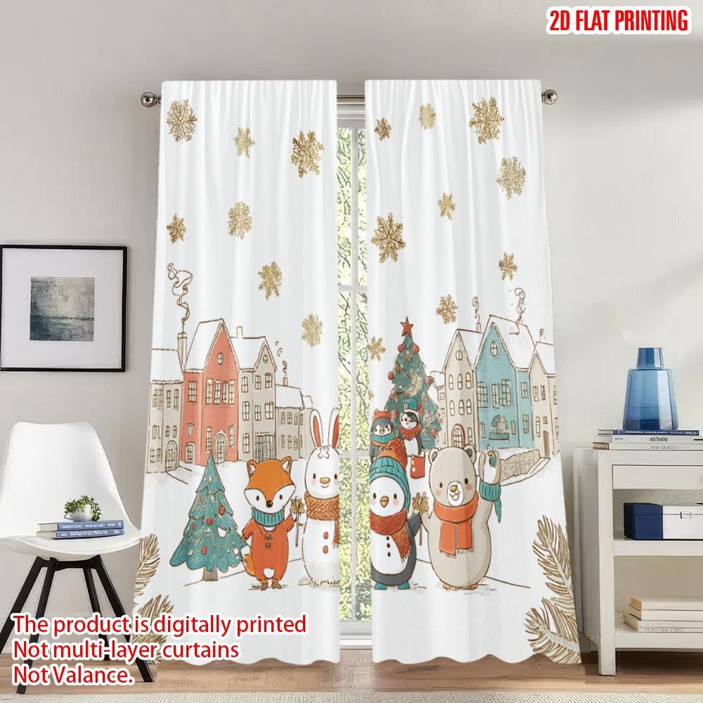 2pcs 2D Flat Printing Merry Christmas Curtains Cute Cartoon Animals Winter Holiday Digital Printed Polyester Drapes Family Party
