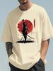Japanese Samurai Printed T-shirt Men's Tracksuit Cotton Casual Sportswear Crew Neck Pullover Short Sleeve Tops Summer Streetwear